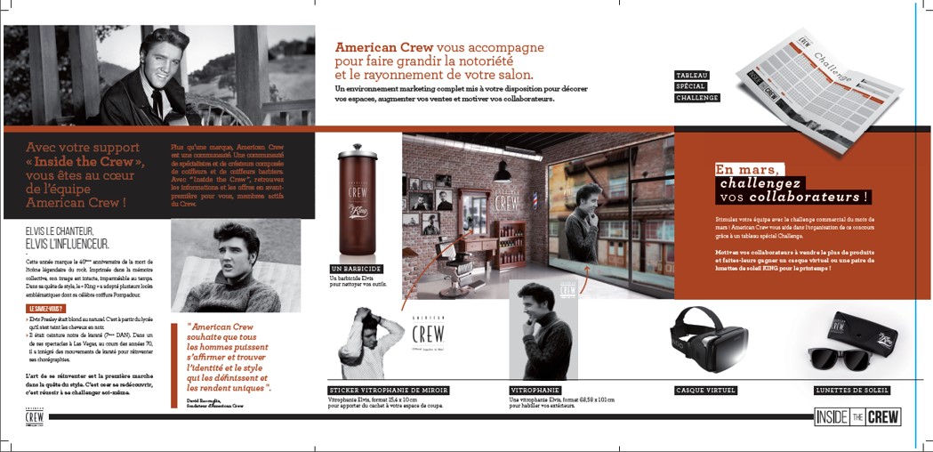 Conception du magazine mensuel d’American Crew intitulé « Inside the crew » à destination de sa première cible : les coiffeurs.